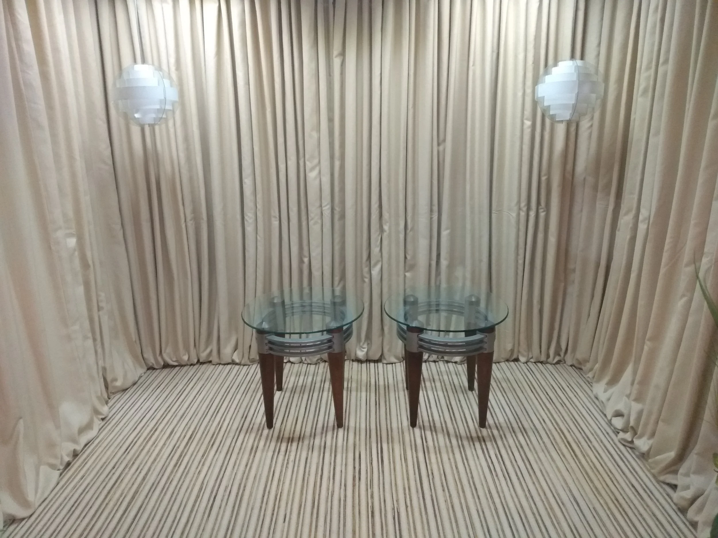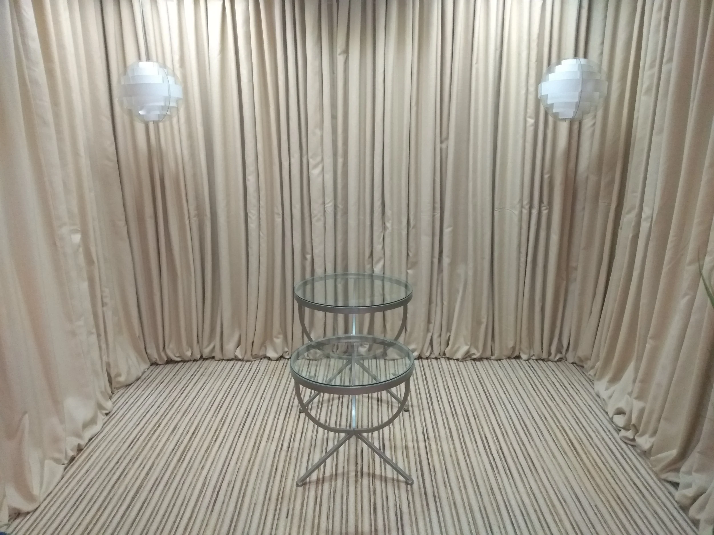 Dimensions (inches): large table 24Diam x 24.5H ,medium table 20Diam x 20.5H